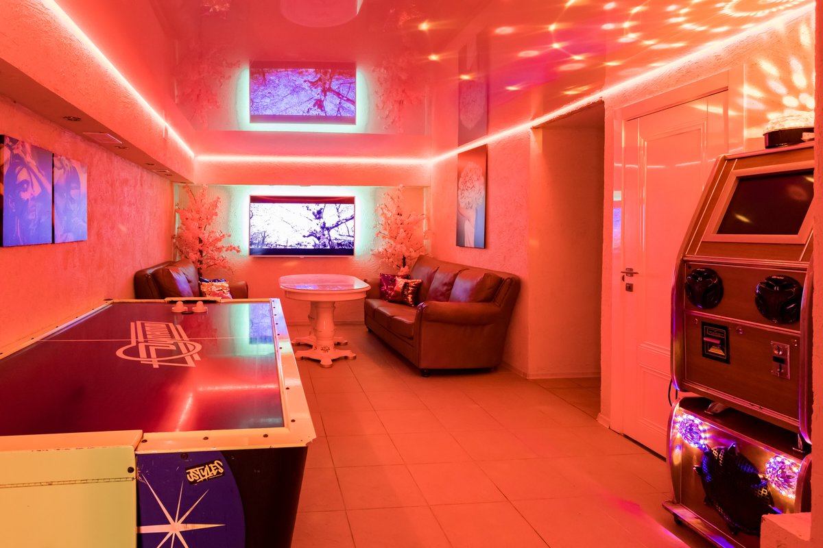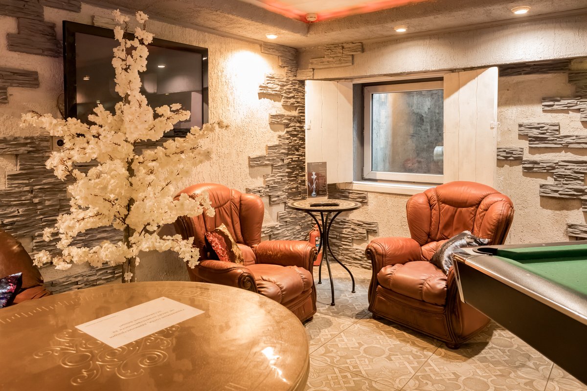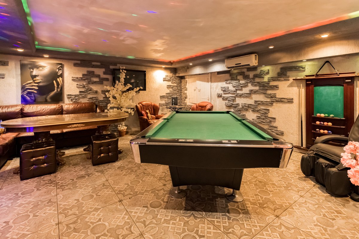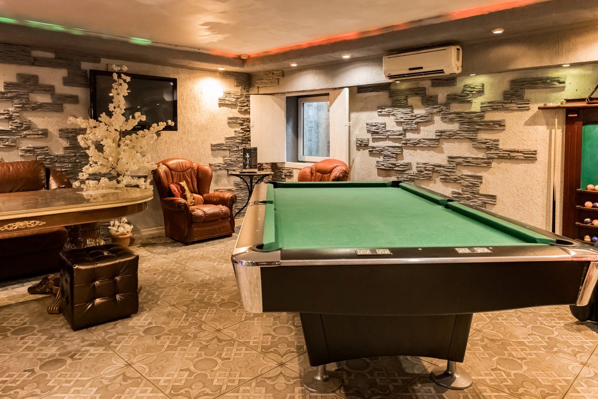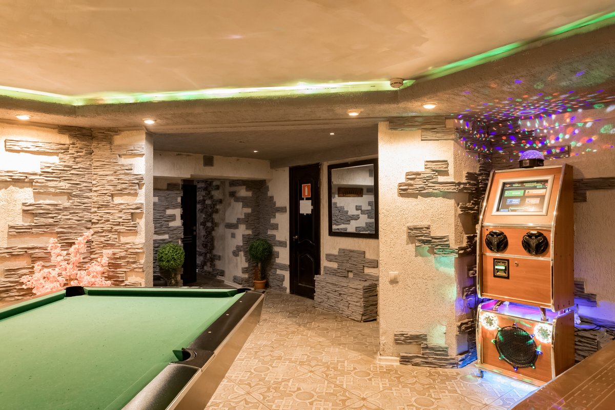 Не хочется в бассейн? Не беда! Вместо этого можно провести время в нашей комнате отдыха. Мы постарались создать здесь уютный, практичный интерьер из максимально натуральных, экологичных материалов, подобрать мебель, которая будет одновременно удобной и эстетичной. Надеемся, что вам понравится! Для создания настроения мы можем предложить вам бильярд, кальян и караоке. Также у нас вы можете заказать блюда русской кухни, а при необходимости принести и собственную еду - мы не возражаем! Главное помните, что плотная трапеза непосредственно перед посещением парной - это не самая удачная идея, согласно мнению докторов. А вот после парной можно трапезничать смело!